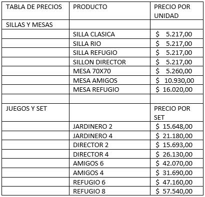 • Si elegiste 2 sillas, el cálculo sería: $5.217 x 2 = $10.434