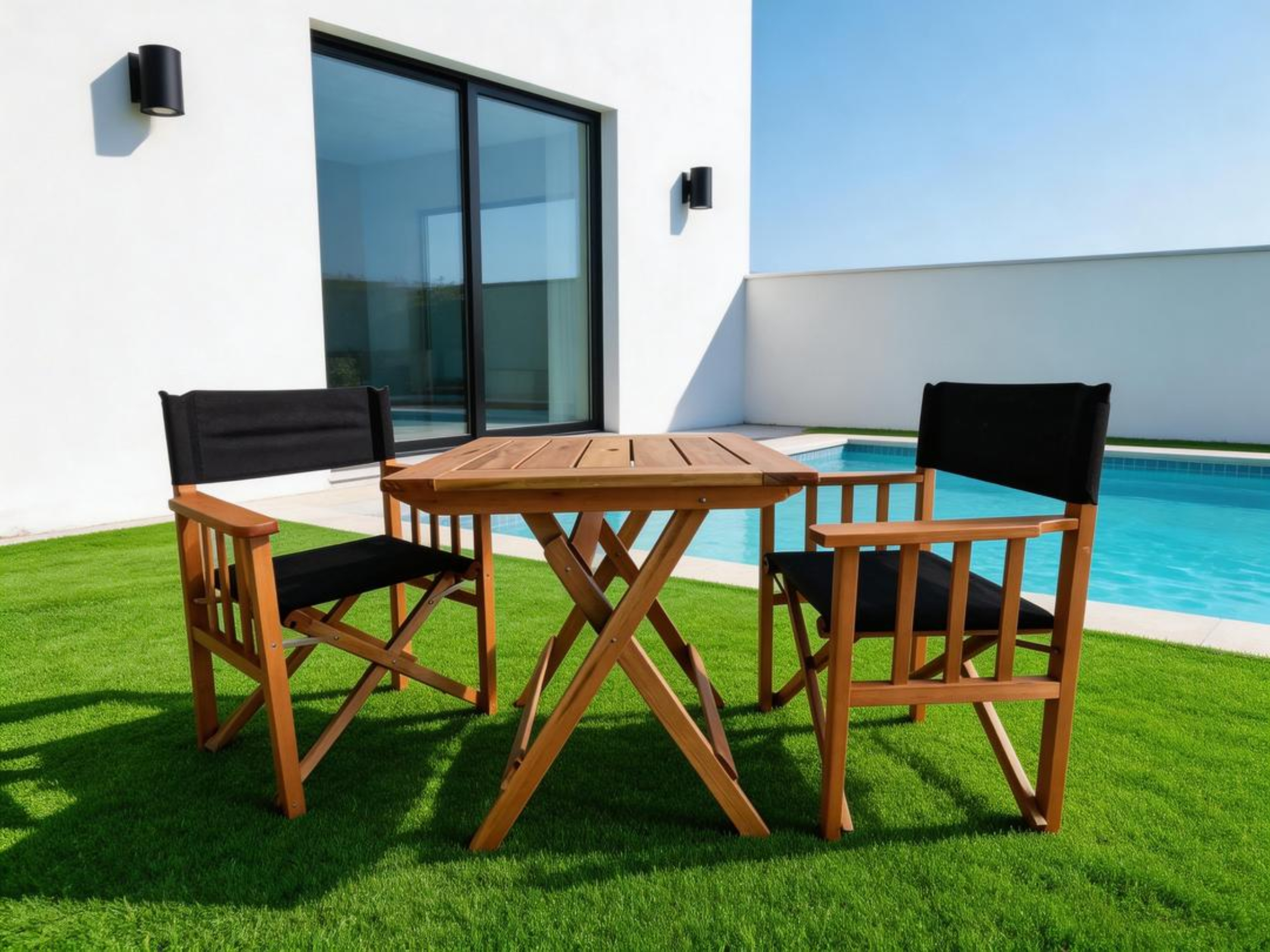 Llevá el cine a tu casa con el Set Director Duo/2, compuesto por una mesa cuadrada plegable y dos sillones director plegables. Ideal para jardines, balcones, terrazas o patios, este set invita a disfrutar momentos al aire libre con presencia, estilo y comodidad superior.