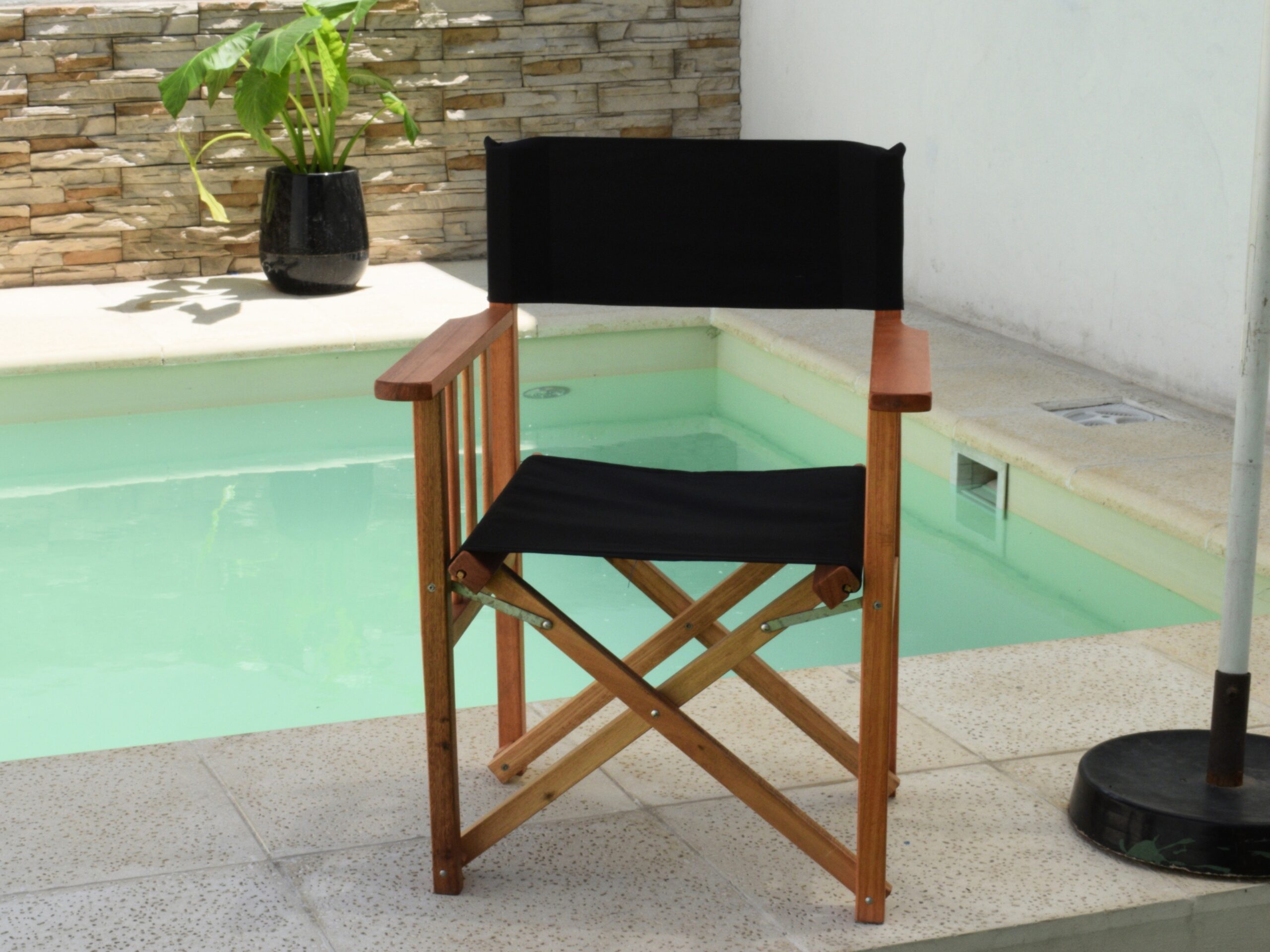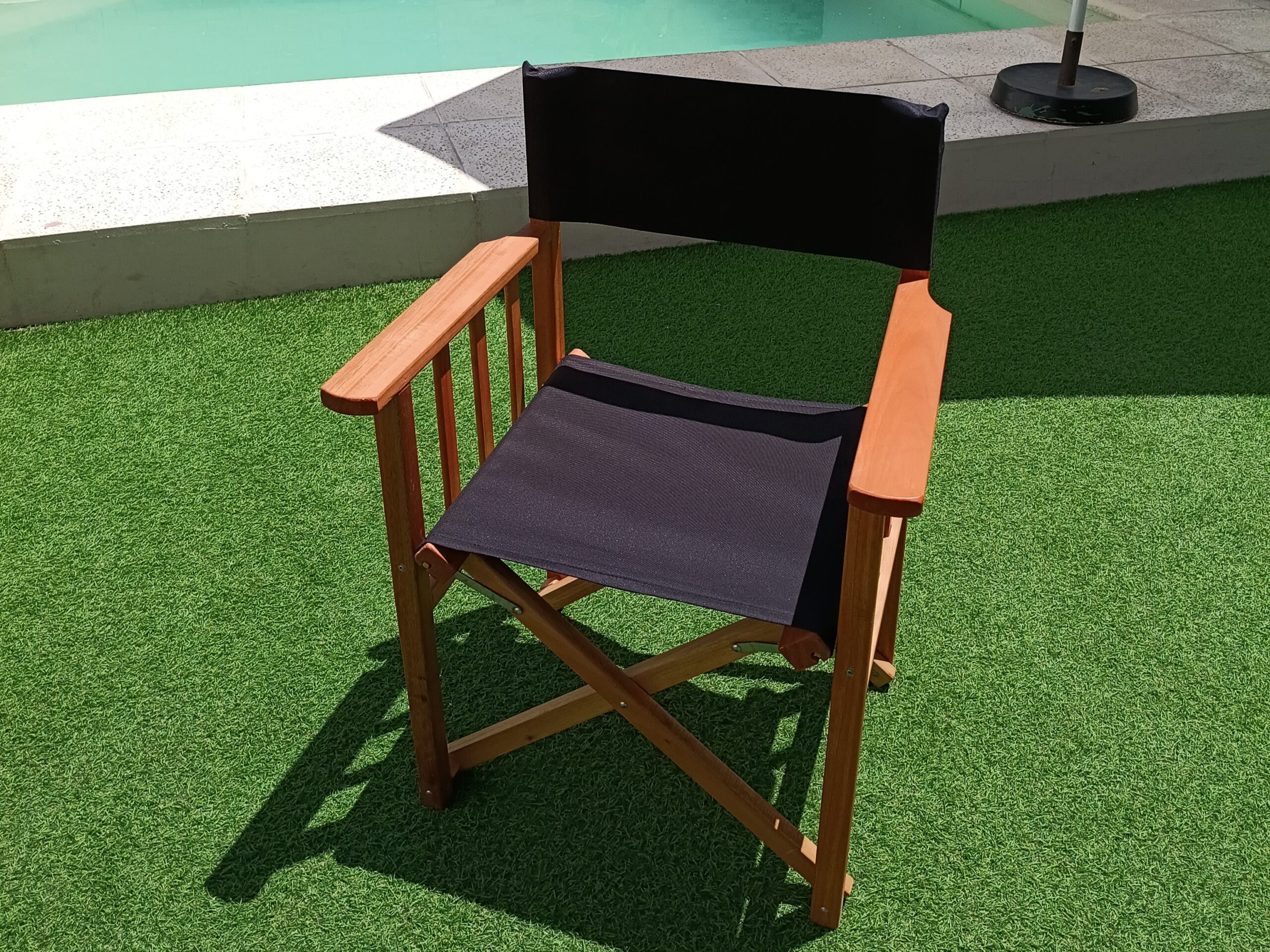 Sillón Director plegable. Diseño clásico y atemporal. Lona de poliéster color negro con filtro UV.